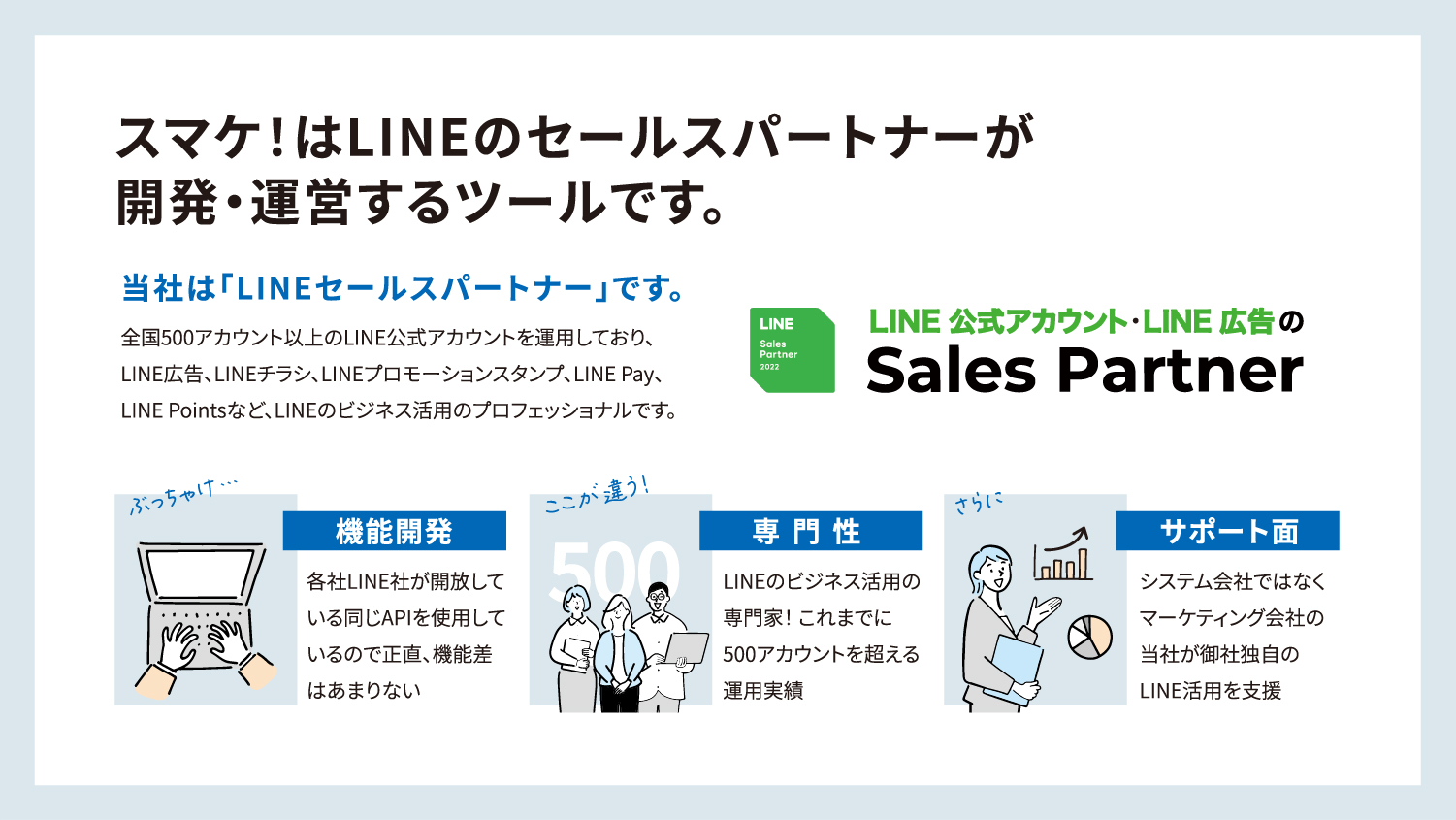 LINE社認定のパートナーの弊社からLINEのビジネス活用のお役立ち情報を配信